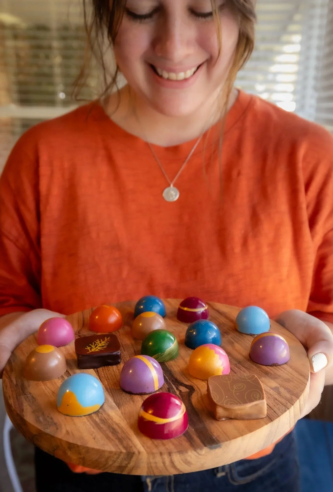 In 2022, she decided to embrace this lifelong love and start work as a chocolatier. After gaining experience working in artisan chocolate production, she set in motion plans to create something of her own. She is thrilled to finally be able to introduce her custom creations, to bring you that “bite of bliss” she strives to achieve with every chocolate.